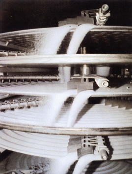 盘式连续干燥器是一种高效的传导型连续干燥设备。其独特的结构和工作原理决定了它具有热效率高、能耗低,占地面积小、配置简单、操作控制方便、操作环境好等特点,广泛适用于化工、医药、农药、食品、饲料、农副产品加工等行业的干燥作业。在各行业使用实践中深受好评。现生产制造常压、密闭、真空三大类型,1200、1500、2200、3000四种规格,A(碳钢)、B(接触物料部分均布不锈钢)、C(在B的基础上,增加蒸汽管路、主轴及支架为不锈钢,筒体和盖顶内衬不锈钢)。三种材质,干燥面积4~180m2,共几百种型号的系列产品,并能提供与之相配套的种辅助设备,可满足用户对各种物料进行干燥的需要。